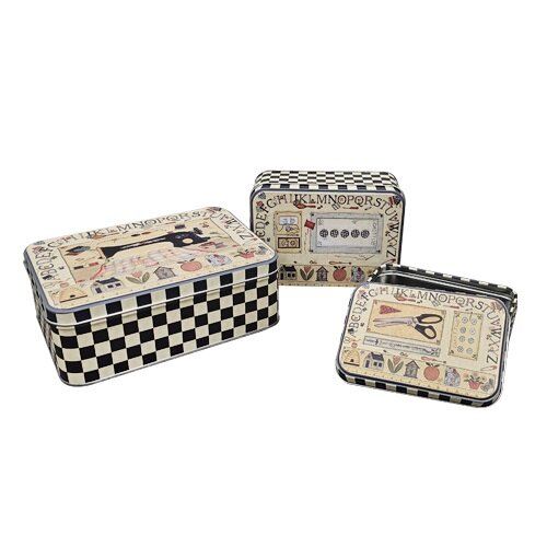 Metallic Box Ecru-Black Squares (A-274)